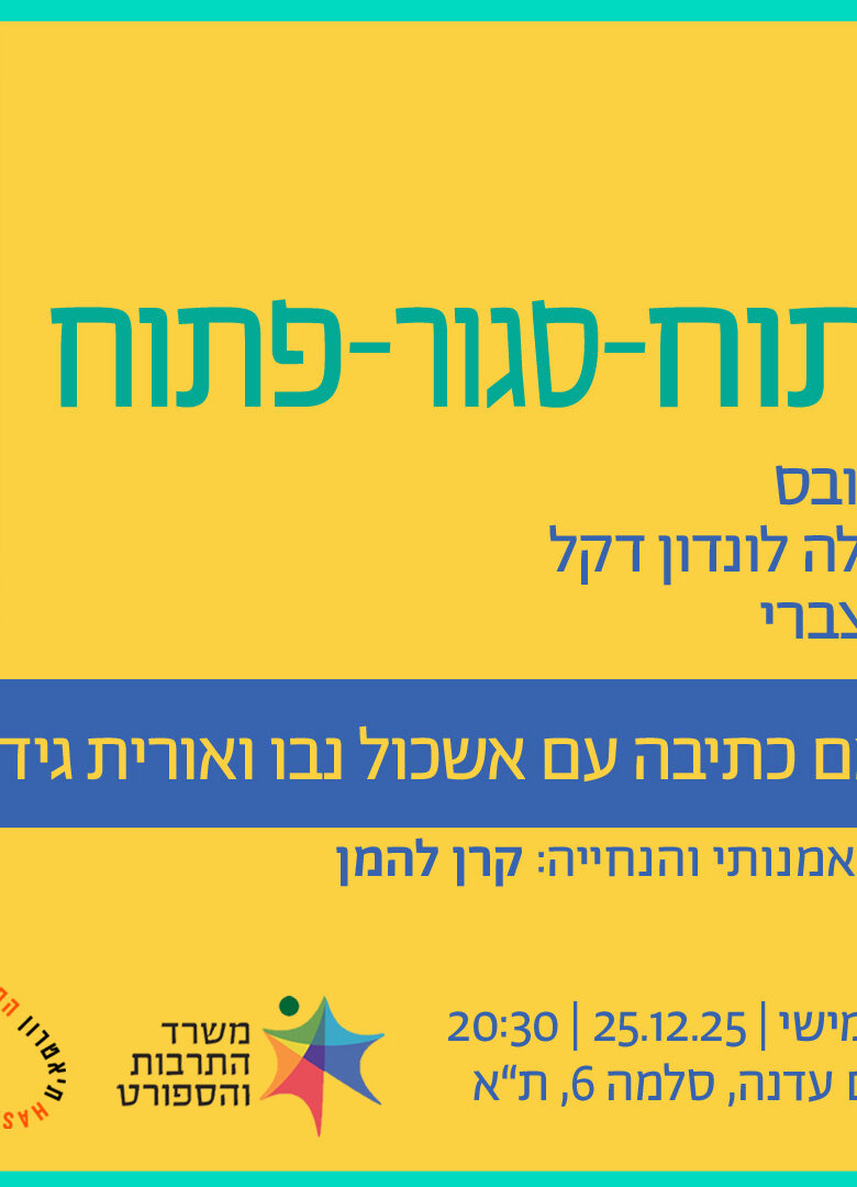 שני 30/12 בשעה 20:00, סלמה 6, תל אביב