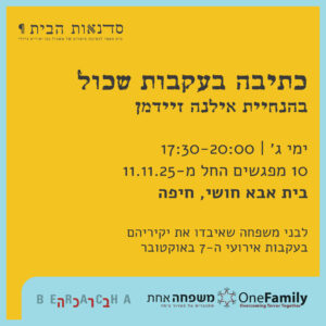 הסדנה מיועדת לבני משפחה מקרבה ראשונה שחוו אובדן ב–7 באוקטובר ובמלחמת חרבות ברזל.