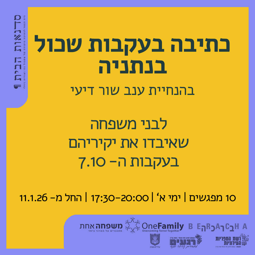 הסדנה מיועדת לבני משפחה מקרבה ראשונה שחוו אובדן ב7 באוקטובר ובמלחמת חרבות ברזל, ולא השתתפו באחת מהסדנאות הקודמות.